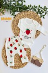 0-9 AY 2'Lİ ÇİLEK DESENLİ KOLLU TAKIM EKRU